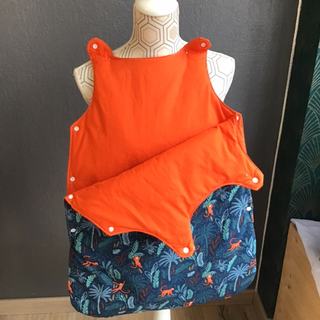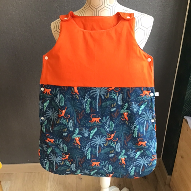Turbulette 0/9 mois collection singe orange, tissus coton oeko tex doublé de ouate fermé avec des pression