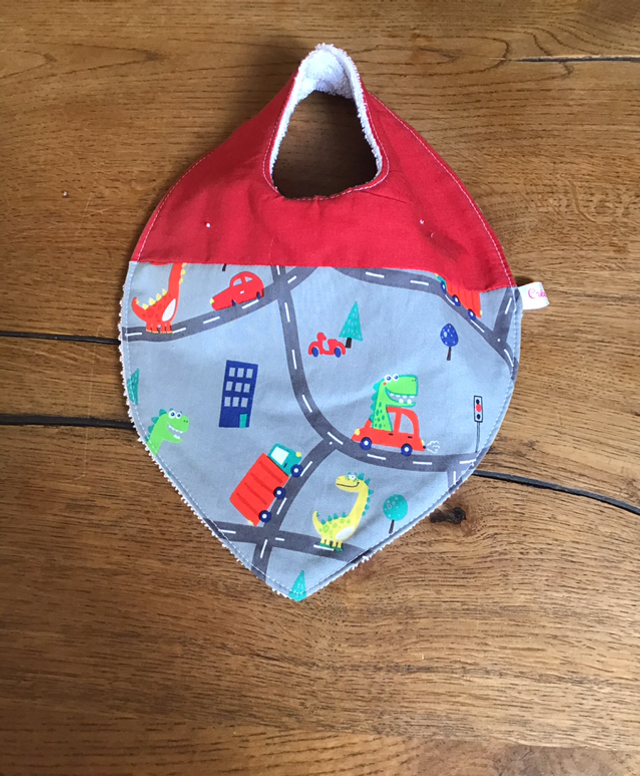 Bavoir bandana pratique pour les poussées dentaire, une face coton imprimée, une face éponge le tout oeko tex, collection dinosaure.